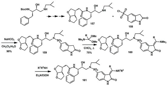 - Eissenstat, M.; Guerassina, T.; Gulnik, S.; Afonina, E.; Silva, A.M.; Ludtke, D.; Yokoe, H.; Yu, B.; Erickson, J. Enamino-oxindole HIV protease inhibitors. Bioorganic Med. Chem. Lett. 2012, 22, 5078–5083. [Google Scholar] [CrossRef]