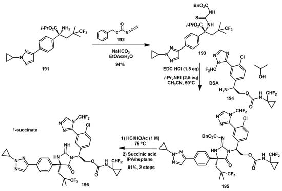 - Ischay, M.A.; Hoang, B.; Steinhuebel, D.P.; Chin, M.R.; Dixon, D.D.; Elfgren, D.; Heumann, L.; Lew, W.; Mundal, D.A.; Neville, S.T.; et al. Process Development and Scale-Up of a Protease Inhibitor for the Treatment of HIV Featuring the Preparation of a Neopentyl Grignard Reagent and Development of a One-Pot Curtius Reaction. Org. Process Res. Dev. 2022, 26, 2694–2706. [Google Scholar] [CrossRef]