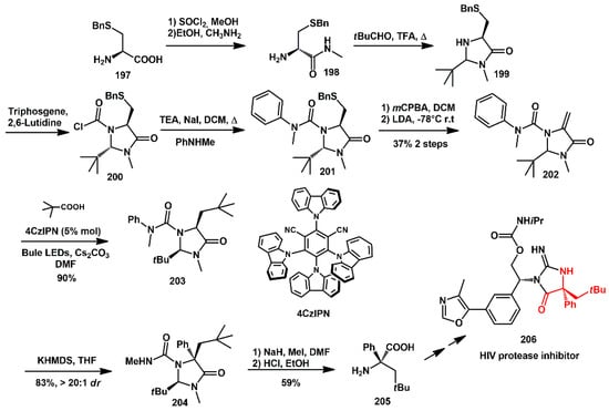 - Sevenich, A.; Liu, G.-Q.; Arduengo, A.J.; Gupton, B.F.; Opatz, T. Asymmetric One-Pot Synthesis of (3R,3aS,6aR)-Hexahydrofuro[2,3-b]furan-3-ol: A Key Component of Current HIV Protease Inhibitors. J. Org. Chem. 2017, 82, 1218–1223. [Google Scholar] [CrossRef] [PubMed]