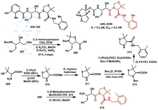 - Riehl, P.S.; Lim, J.; Finnigan, J.D.; Charnock, S.J.; Hyster, T.K. An Efficient Synthesis of the Bicyclic Darunavir Side Chain Using Chemoenzymatic Catalysis. Org. Process. Res. Dev. 2022, 26, 2096–2101. [Google Scholar] [CrossRef]