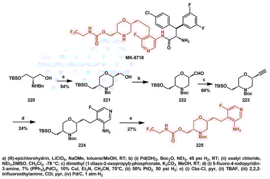 - Bungard, C.J.; Williams, P.D.; Ballard, J.E.; Bennett, D.J.; Beaulieu, C.; Bahnck-Teets, C.; Carroll, S.S.; Chang, R.K.; Dubost, D.C.; Fay, J.F.; et al. Discovery of MK-8718, an HIV Protease Inhibitor Containing a Novel Morpholine Aspartate Binding Group. ACS Med. Chem. Lett. 2016, 7, 702–707. [Google Scholar] [CrossRef] [PubMed]