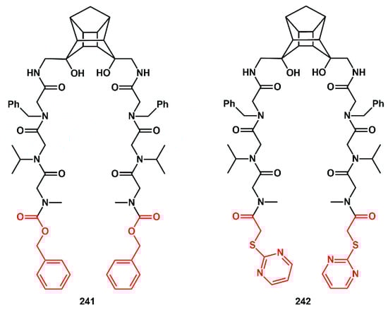 - Makatini, M.M.; Petzold, K.; Arvidsson, P.I.; Honarparvar, B.; Govender, T.; Maguire, G.E.; Parboosing, R.; Sayed, Y.; Soliman, M.E.; Kruger, H.G. Synthesis, screening and computational investigation of pentacycloundecane-peptoids as potent CSA-HIV PR inhibitors. Eur. J. Med. Chem. 2012, 57, 459–467. [Google Scholar] [CrossRef]