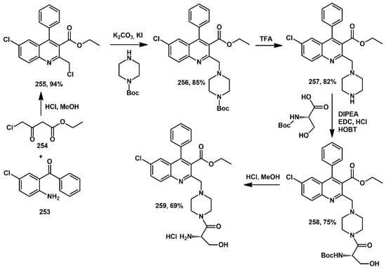 - Gopi, P.; Lokesh, R.; Sarveswari, S. Synthesis of Quinoline Motif and Their Virtual HIV Protease Inhibition Analysis, Anti-Proliferative Probing on HCT116 Cell Line. Chem. Sel. 2019, 4, 7627–7633. [Google Scholar] [CrossRef]