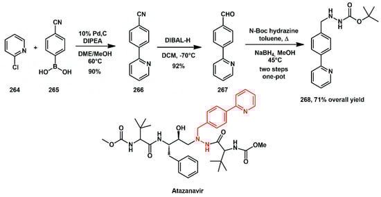 - Vijayalakshmi, C.; Prasad, M.G.; Katari, N.K.; Reddy, P.N. A Scalable Synthesis of Biaryl Unit of the HIV Protease Inhibitor Atazanavir. Lett. Org. Chem. 2019, 17, 68–72. [Google Scholar] [CrossRef]