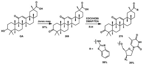 - Zheng, L.; Pan, B.; Tang, T.; Xu, H.; Hu, W.; Zhang, Y.; Wei, X.; Liu, X.; Wu, Q.; Shi, Y.; et al. Synthesis and evaluation of nitrogen-containing derivatives of 3,11-dioxo-olean-12-en-30-oic acid against HIV-1 protease. Nat. Prod. Res. 2024, 39, 3735–3744. [Google Scholar] [CrossRef]