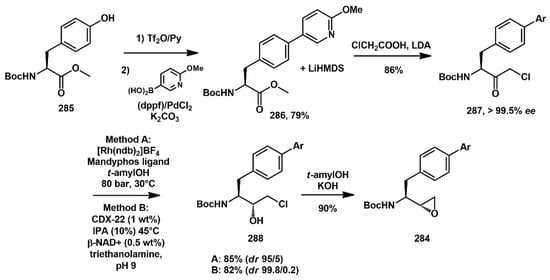 - Houpis, I.N.; Liu, R.; Liu, L.; Wang, Y.; Dong, N.; Zhao, X.; Zhang, Y.; Xiao, T.; Wang, Y.; Depre, D.; et al. Synthesis of a Long Acting HIV Protease Inhibitor via Metal or Enzymatic Reduction of the Appropriate Chloro Ketone and Selective Zinc Enolate Condensation with an Amino Epoxide. Adv. Synth. Catal. 2013, 355, 1829–1839. [Google Scholar] [CrossRef]