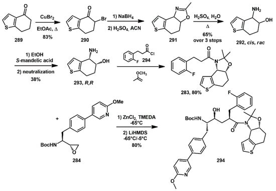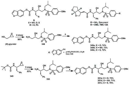 - Dong, M.; Teng, D.; Cao, G. Advances in the synthesis of (3R,3aS,6aR)-hexahydrofuro-[2,3-b]furan-3-ol, a key ligand of the HIV protease inhibitors. Chem. Heterocycl. Compd. 2024, 60, 315–322. [Google Scholar] [CrossRef]