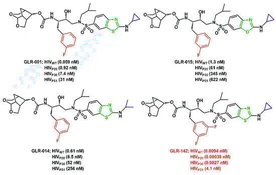 - Amano, M.; Tojo, Y.; Salcedo-Gómez, P.M.; Campbell, J.R.; Das, D.; Aoki, M.; Xu, C.-X.; Rao, K.V.; Ghosh, A.K.; Mitsuya, H. GRL-0519, a Novel Oxatricyclic Ligand-Containing Nonpeptidic HIV-1 Protease Inhibitor (PI), Potently Suppresses Replication of a Wide Spectrum of Multi-PI-Resistant HIV-1 Variants. In Vitro Antimicrob. Agents Chemother. 2013, 57, 2036–2046. [Google Scholar] [CrossRef]