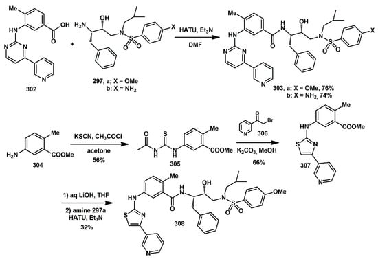 - Mishevich, J.L.; Kovela, S.; Shaktah, R.; Ghosh, A.K.; Johnson, M.; Wang, Y.-F.; Wong-Sam, A.; Agniswamy, J.; Amano, M.; Takamatsu, Y.; et al. Exploration of imatinib and nilotinib-derived templates as the P2-Ligand for HIV-1 protease inhibitors: Design, synthesis, protein X-ray structural studies, and biological evaluation. Eur. J. Med. Chem. 2023, 255, 115385. [Google Scholar] [CrossRef]