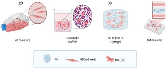 - Busch, C.; Nyamondo, K.; Wheadon, H. Complexities of modelling the bone marrow microenvironment to facilitate hematopoietic research. Exp. Hematol. 2024, 135, 104233. [Google Scholar] [CrossRef] [PubMed]