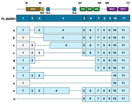 - Li, L.; Ryser, S.; Dizin, E.; Pils, D.; Krainer, M.; Jefford, C.E.; Bertoni, F.; Zeillinger, R.; Irminger-Finger, I. Oncogenic BARD1 isoforms expressed in gynecological cancers. Cancer Res. 2007, 67, 11876–11885. [Google Scholar] [CrossRef] [PubMed]