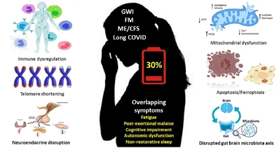 Chicago/Turabian StyleMantle, David, Joan Carles Domingo, Beatrice Alexandra Golomb, and Jesús Castro-Marrero. 2025. "Gulf War Illness, Fibromyalgia, Myalgic Encephalomyelitis/Chronic Fatigue Syndrome and Long COVID Overlap in Common Symptoms and Underlying Biological Mechanisms: Implications for Future Therapeutic Strategies" International Journal of Molecular Sciences 26, no. 18: 9044. https://doi.org/10.3390/ijms26189044