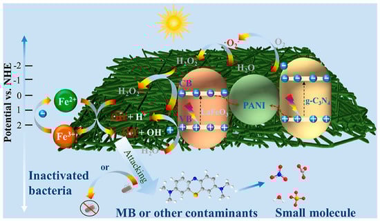 - Cui, Z.; Yuan, R.; Chen, H.; Zhou, B.; Zhu, B.; Zhang, C. Application of polyaniline-based photocatalyst in photocatalytic degradation of micropollutants in water: A review. J. Water Process Eng. 2024, 59, 104900. [Google Scholar] [CrossRef]