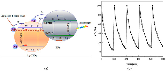 - Yang, Y.; Wen, J.; Wei, J.; Xiong, R.; Shi, J.; Pan, C. Polypyrrole-Decorated Ag-TiO2 Nanofibers Exhibiting Enhanced Photocatalytic Activity under Visible-Light Illumination. ACS Appl. Mater. Interfaces 2013, 5, 6201–6207. [Google Scholar] [CrossRef]