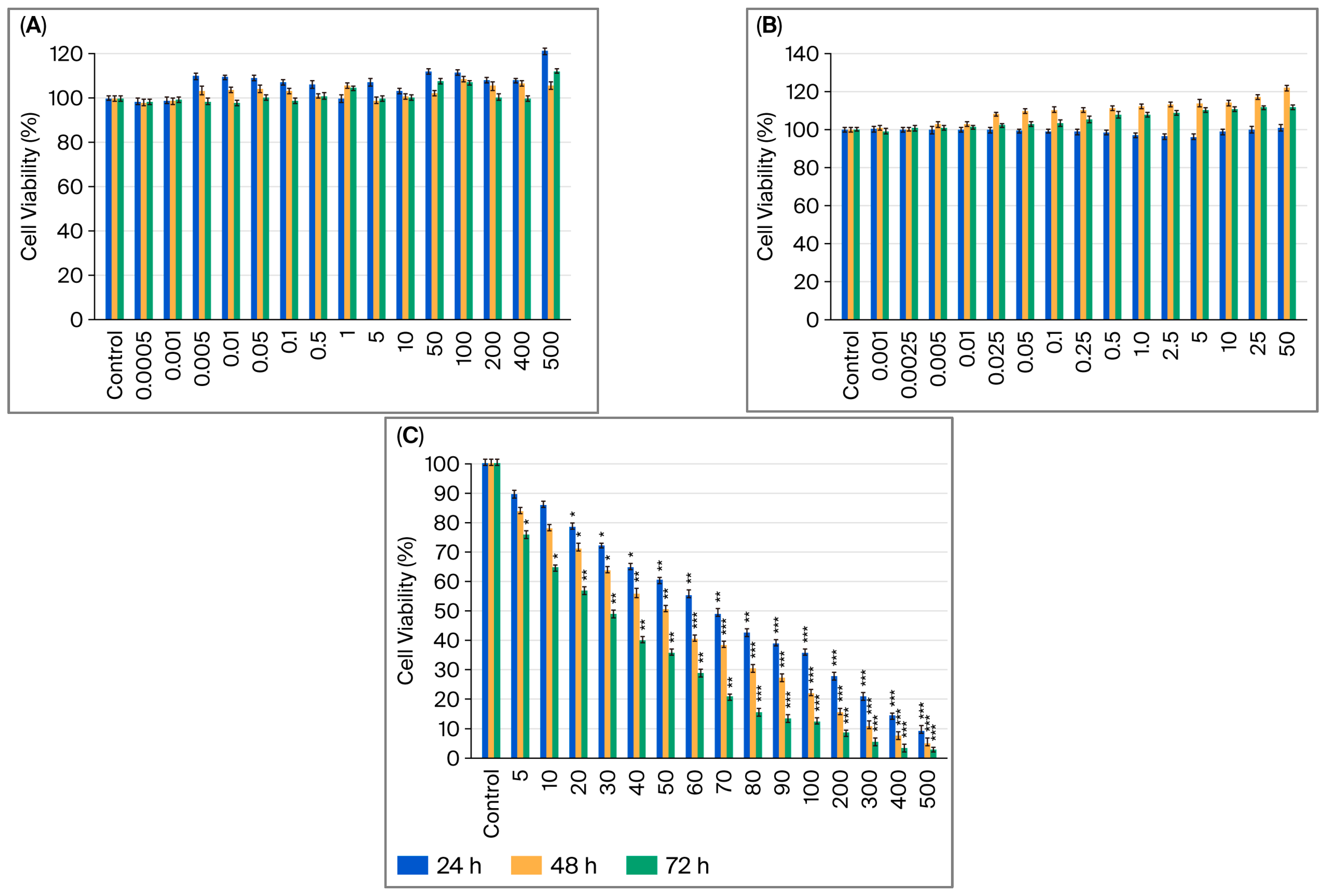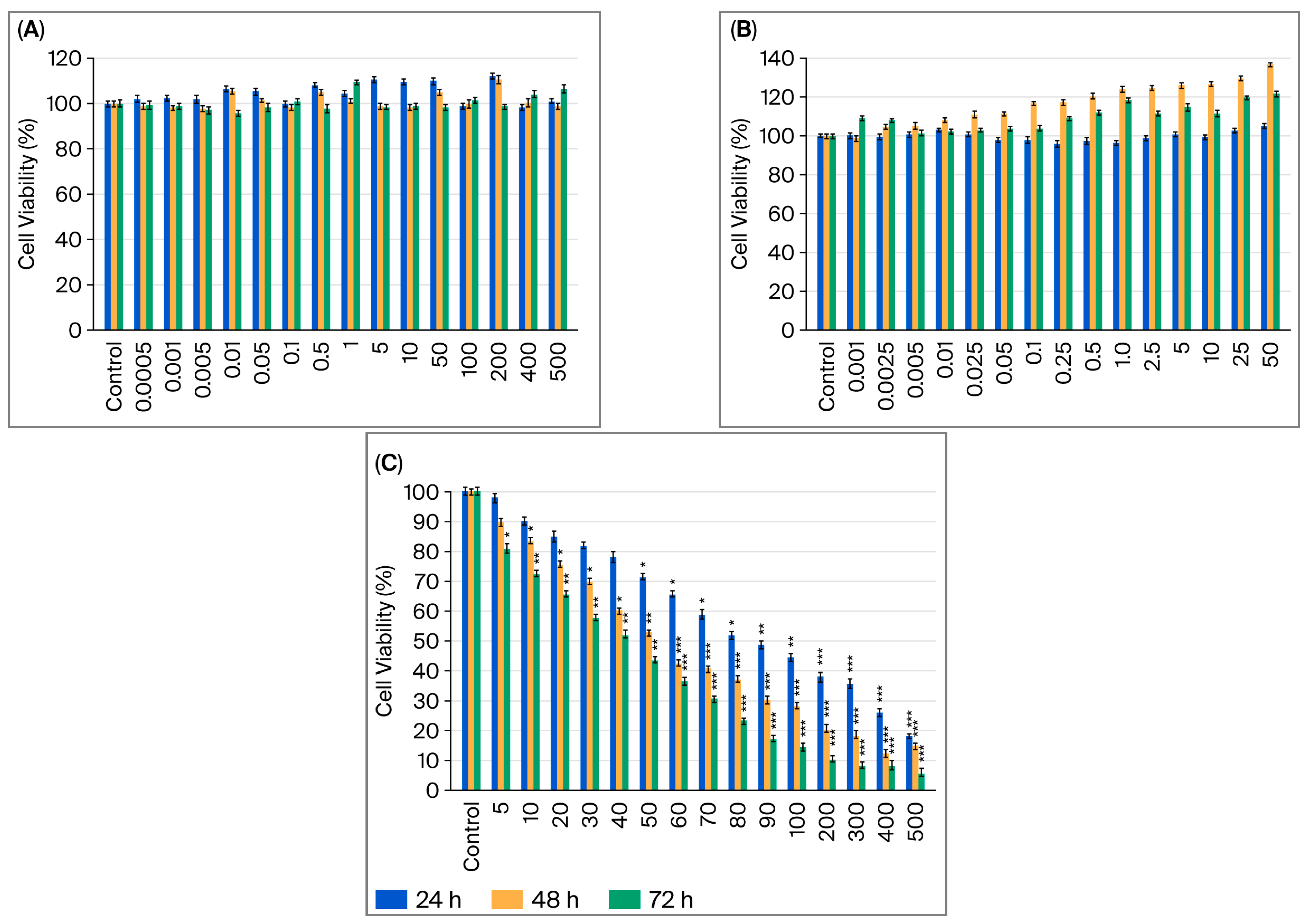 2.1. Assessment of How Single Doses of Vitamin B12, G-CSF, and Cisplatin Affect Cell Viability