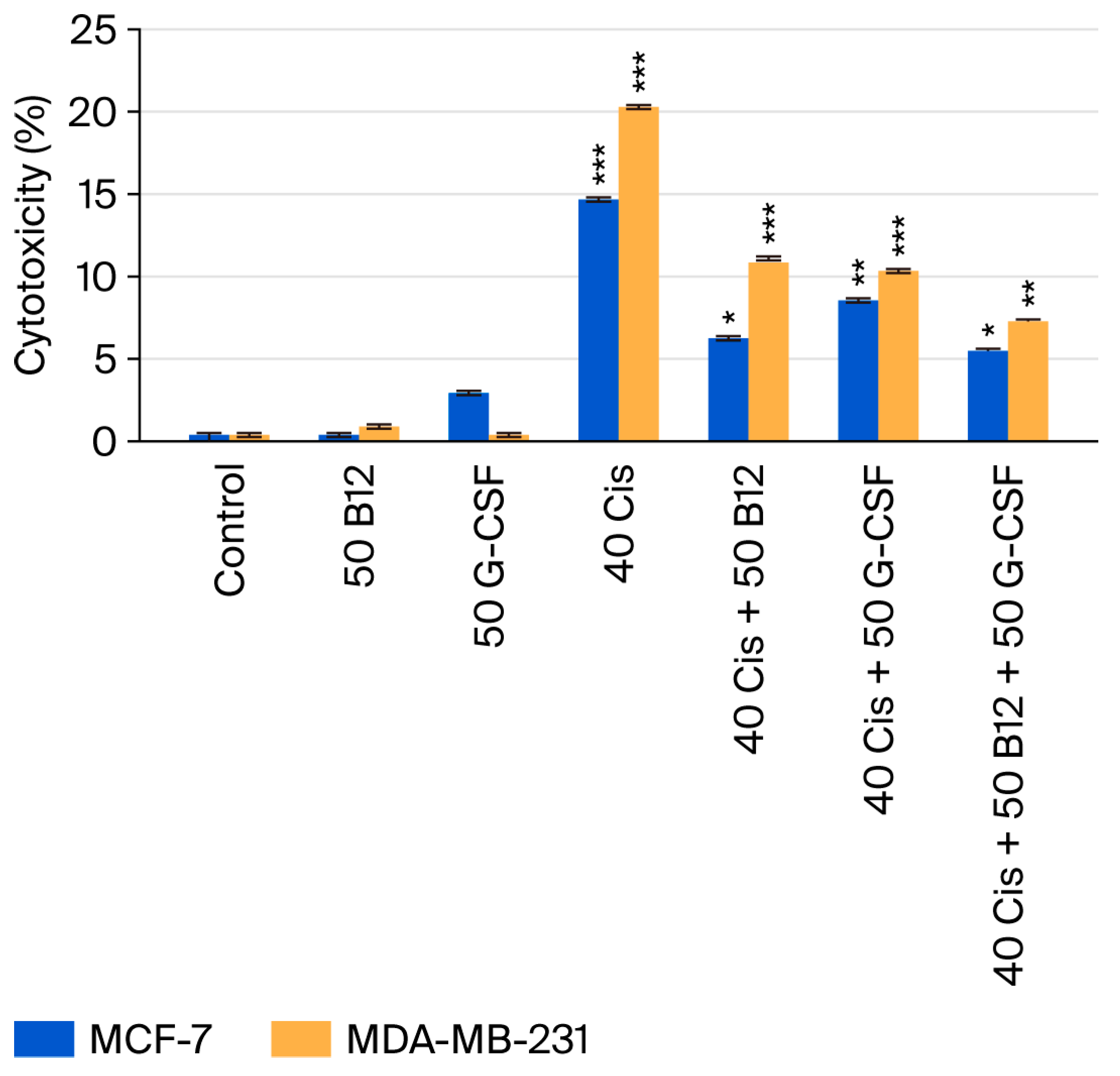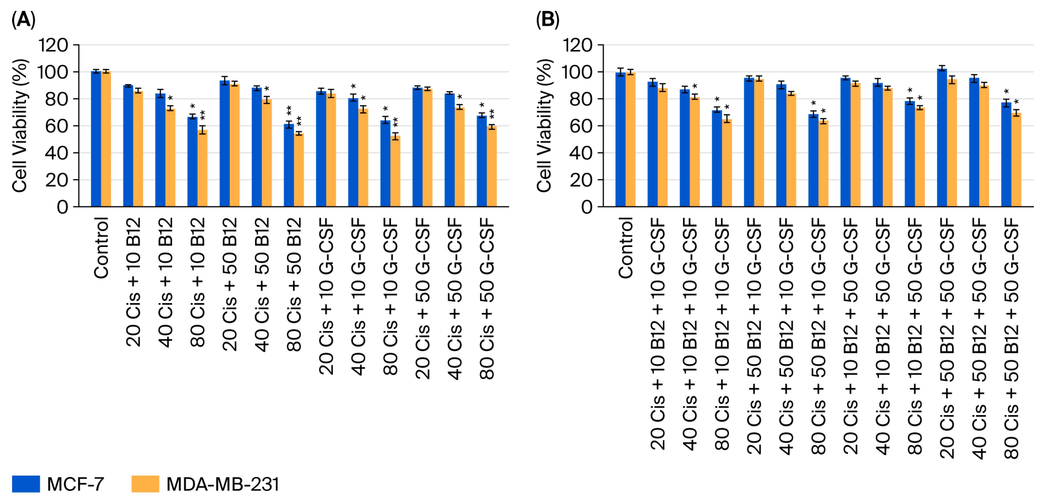 The Responsiveness of Breast Cancer Cells to Varied Levels of Vitamin B12, Cisplatin, and G-CSF