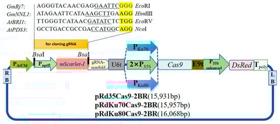 2.1. Construction of pRd35Cas9-2BR, pRdKu70Cas9-2BR and pRdKu80Cas9-2BR