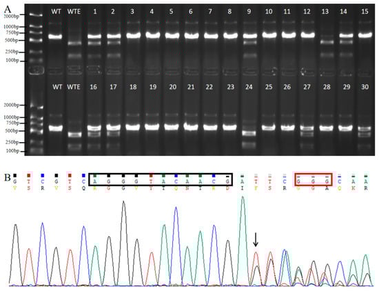 - Ma, X.; Zhang, Q.; Zhu, Q.; Liu, W.; Chen, Y.; Qiu, R.; Wang, B.; Yang, Z.; Li, H.; Lin, Y.; et al. A Robust CRISPR/Cas9 System for Convenient, High-Efficiency Multiplex Genome Editing in Monocot and Dicot Plants. Mol. Plant 2015, 8, 1274–1284. [Google Scholar] [CrossRef]