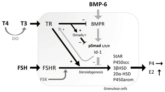 Accordingly, the present study aimed to elucidate the direct effects of thyroid hormones on steroidogenesis, with a particular focus on their interaction with the BMP system in GCs.