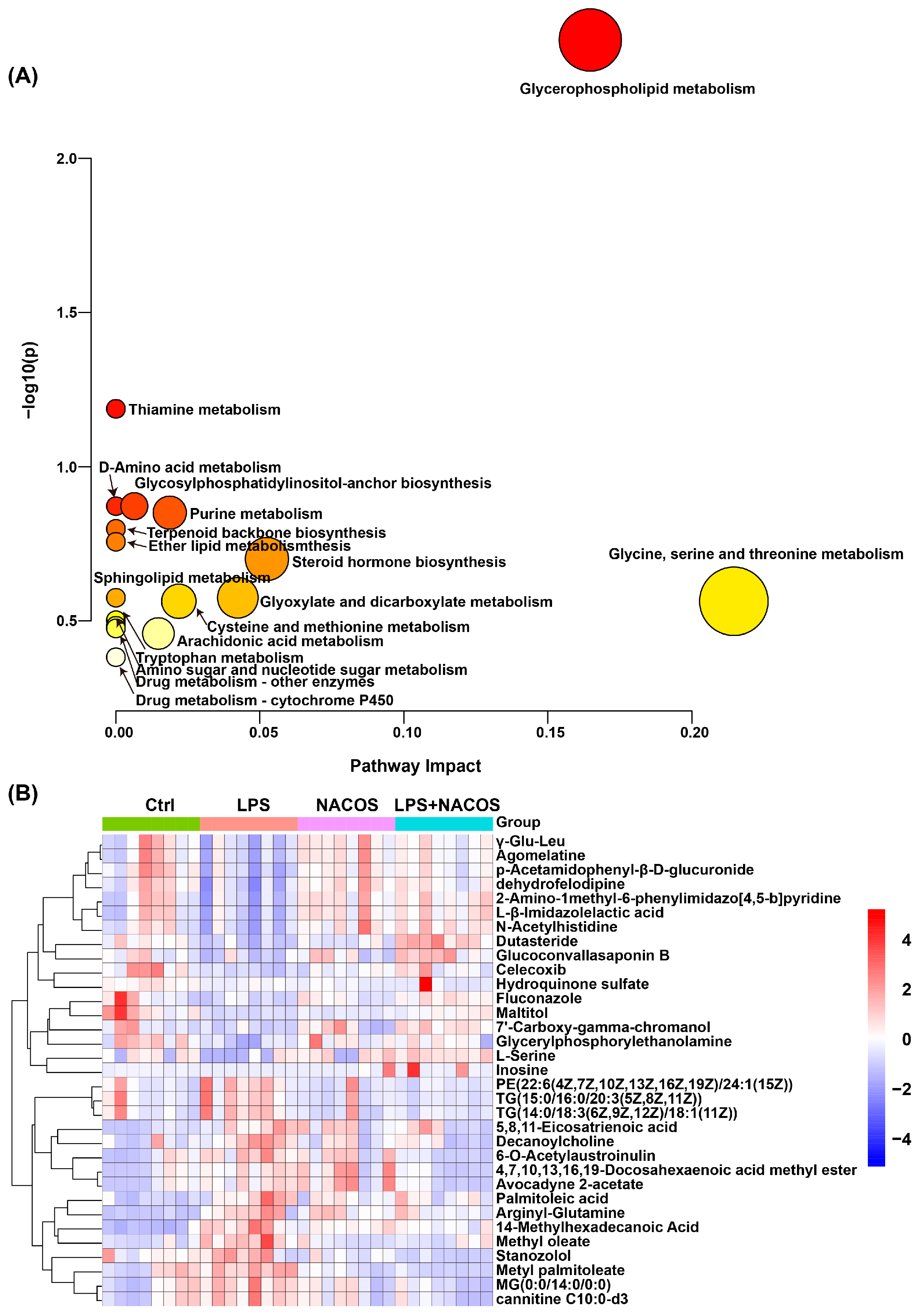 2.8. NACOS Reversed Glycerophospholipid Metabolism in Lung Tissues of ALI Mice