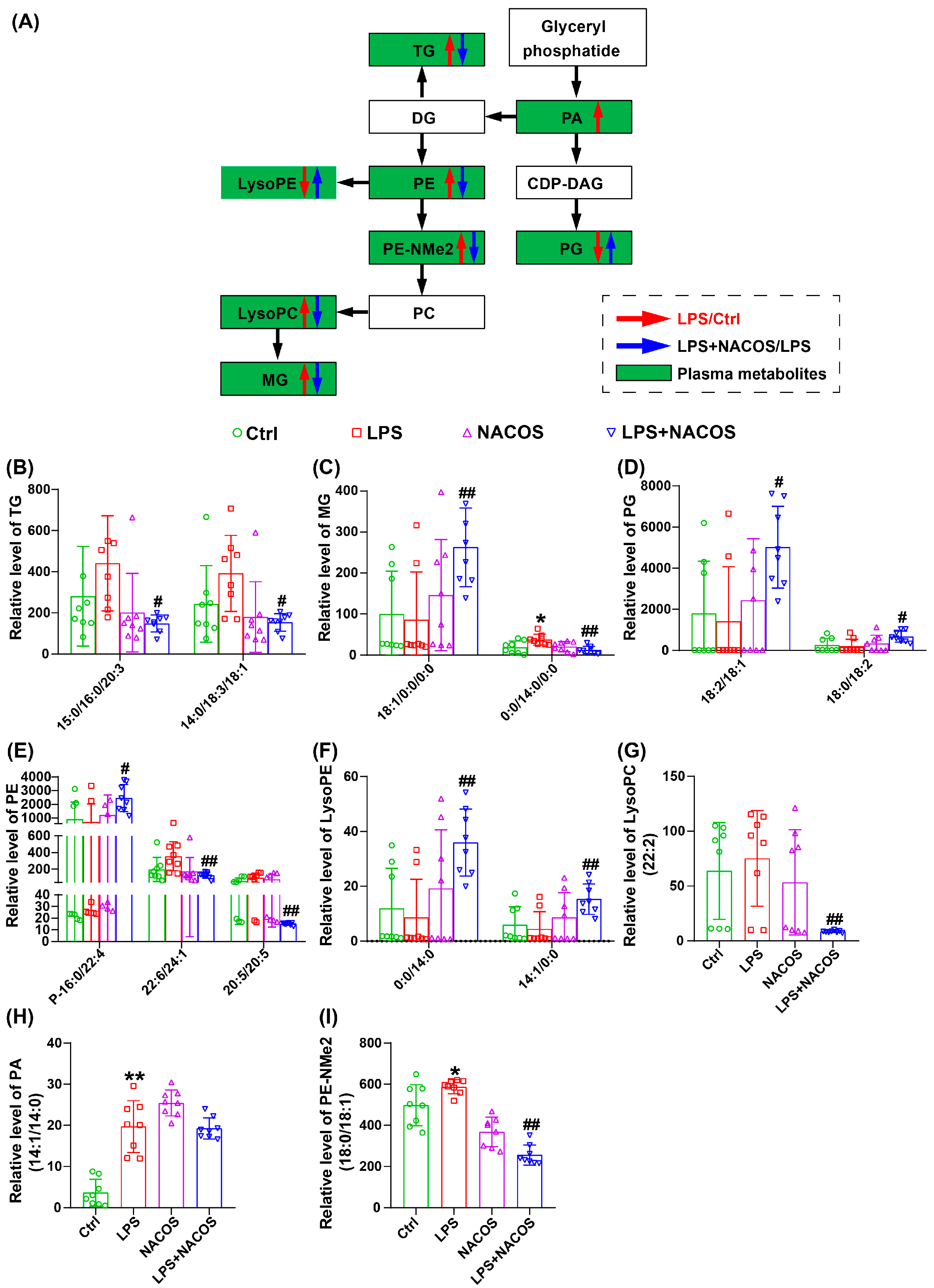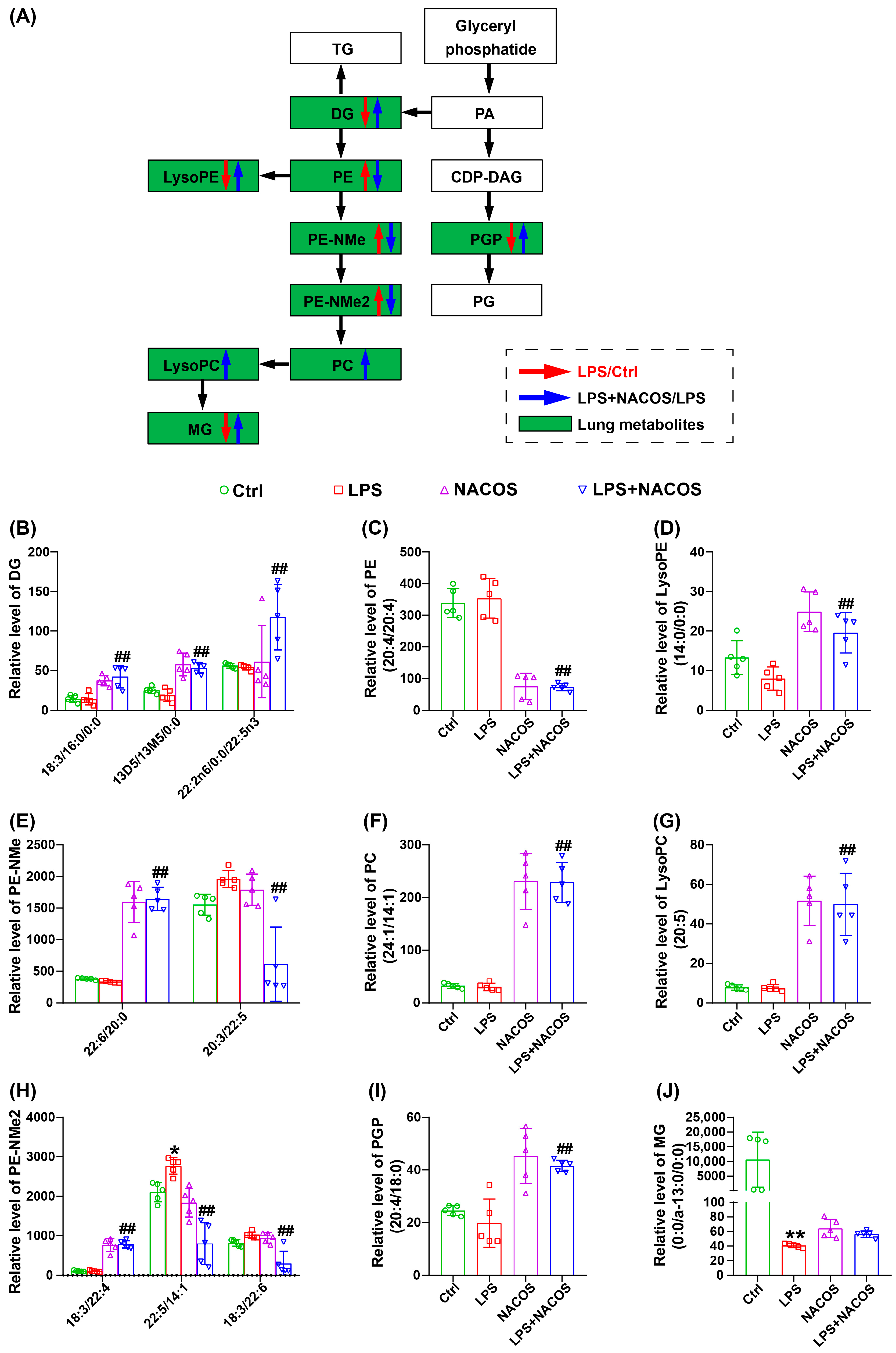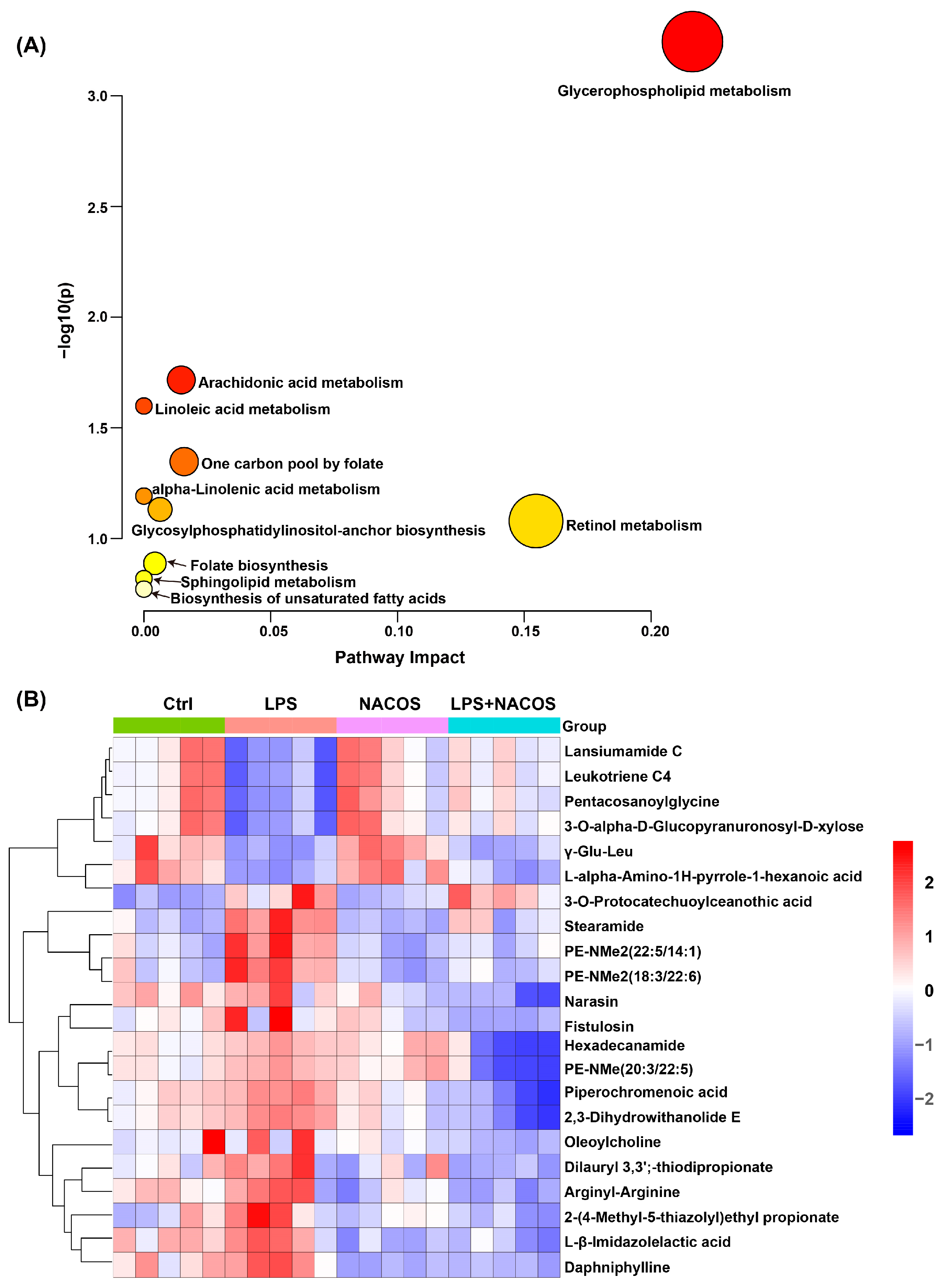 2.5. NACOS Reversed Glycerophospholipid Metabolism in ALI Mice