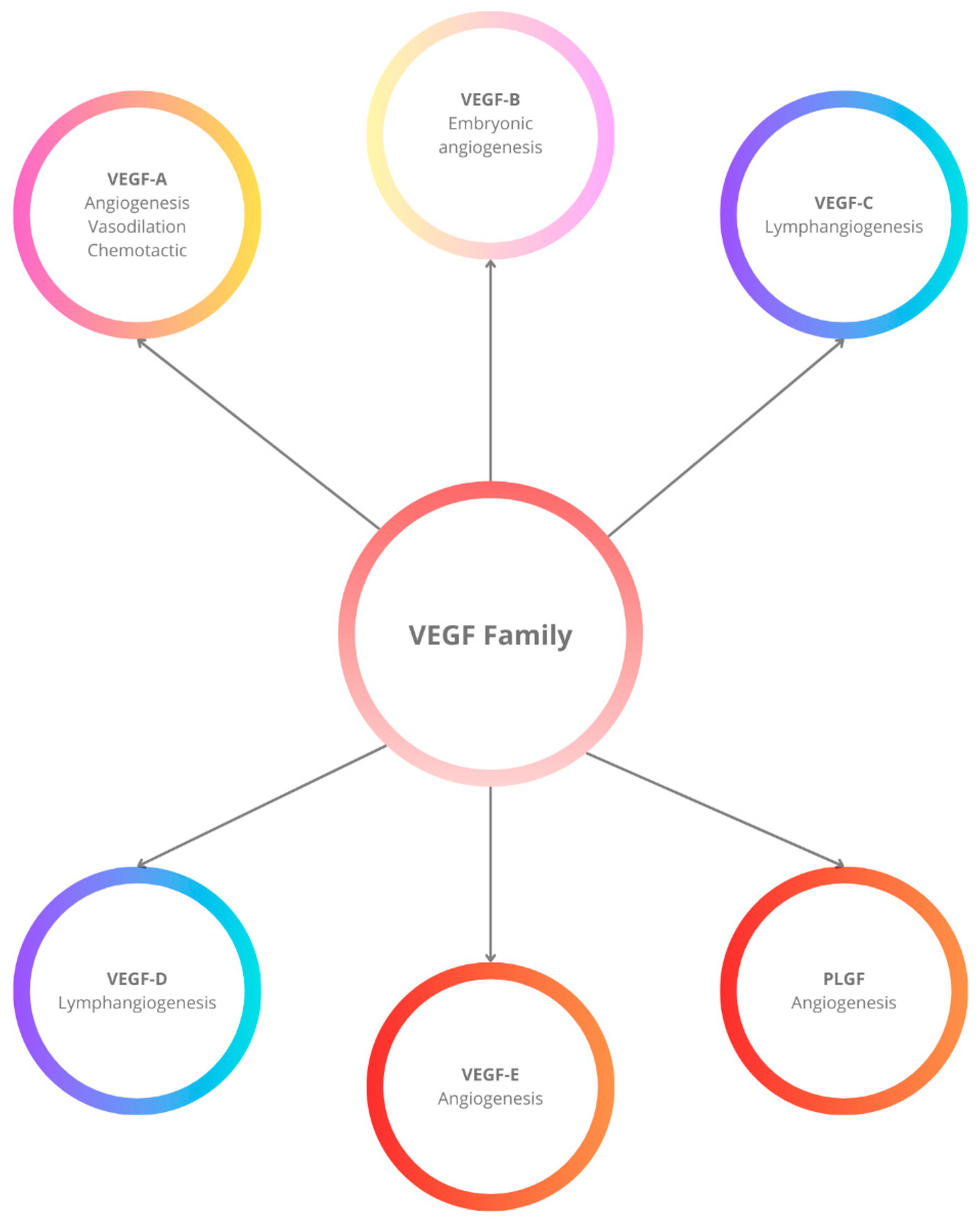 - Melincovici, C.S.; Boşca, A.B.; Şuşman, S.; Mărginean, M.; Mihu, C.; Istrate, M.; Moldovan, I.M.; Roman, A.L.; Mihu, C.M. Vascular endothelial growth factor (VEGF)—Key factor in normal and pathological angiogenesis. Rom. J. Morphol. Embryol. 2018, 59, 455–467. [Google Scholar] [PubMed]
