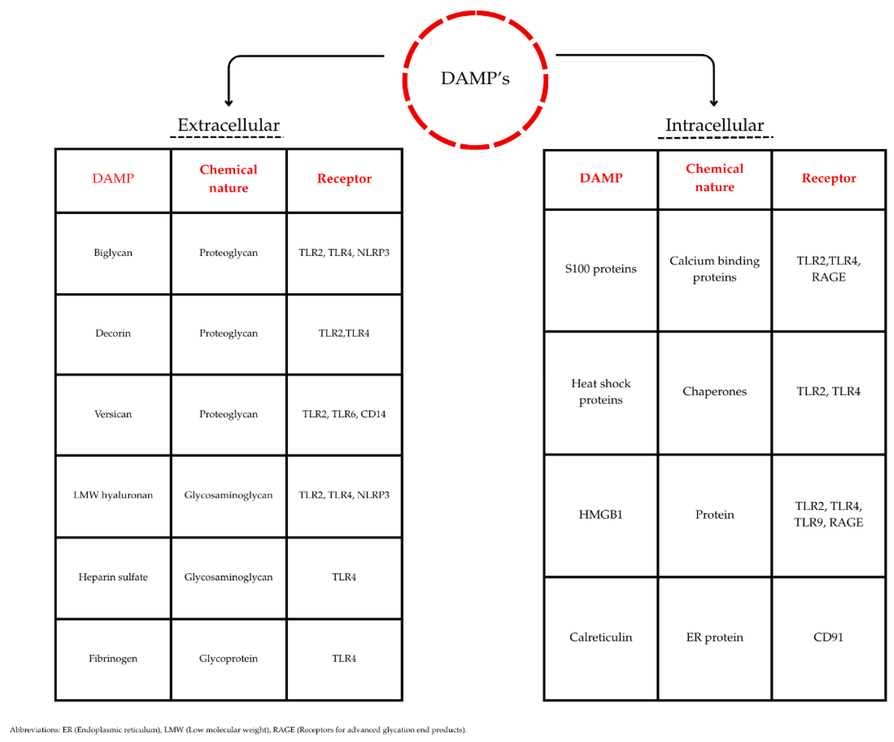 - Roh, J.S.; Sohn, D.H. Damage-Associated Molecular Patterns in Inflammatory Diseases. Immune Netw. 2018, 18, e27. [Google Scholar] [CrossRef]