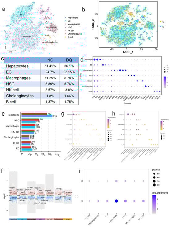 2.2. Single-Cell RNA Sequencing Reveals the Characteristics of Porcine Liver Cell Types