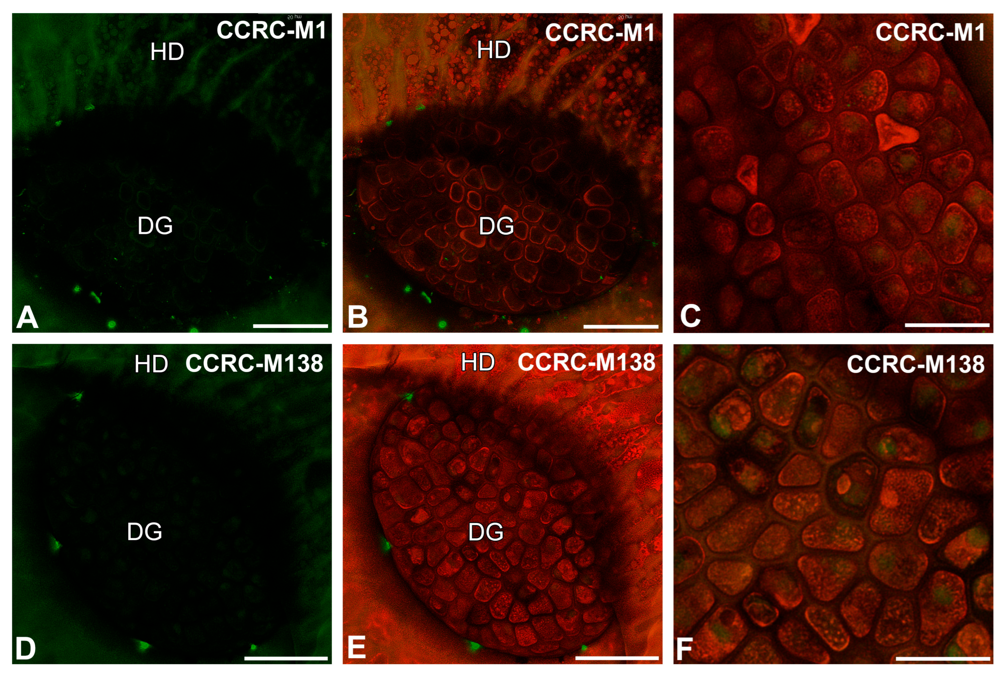 - Larson, E.R.; Tierney, M.L.; Tinaz, B.; Domozych, D.S. Using monoclonal antibodies to label living root hairs: A novel tool for studying cell wall microarchitecture and dynamics in Arabidopsis. Plant Methods 2014, 10, 30. [Google Scholar] [CrossRef]
