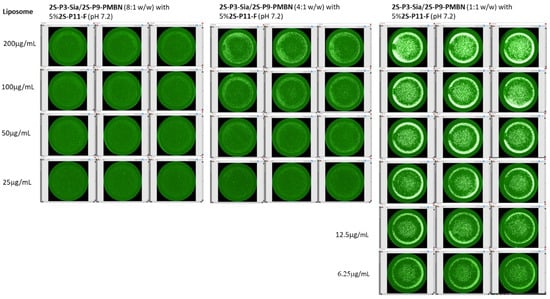 3.3. In Vitro PMBN-Mediated Liposome Binding to Bacteria