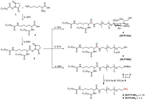 3.1.4. α,ε-N,N′-Di-stearoyl Lysine (α-Sialo-PEG3-amine)-amide (4, 2S-P3-Sia)