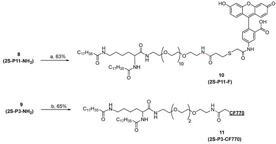 3.1.11. α,ε-N,N′-Di-stearoyl Lysine (CF770-N-Amido-PEG3-amine)-amide (11, 2S-P3-CF770)