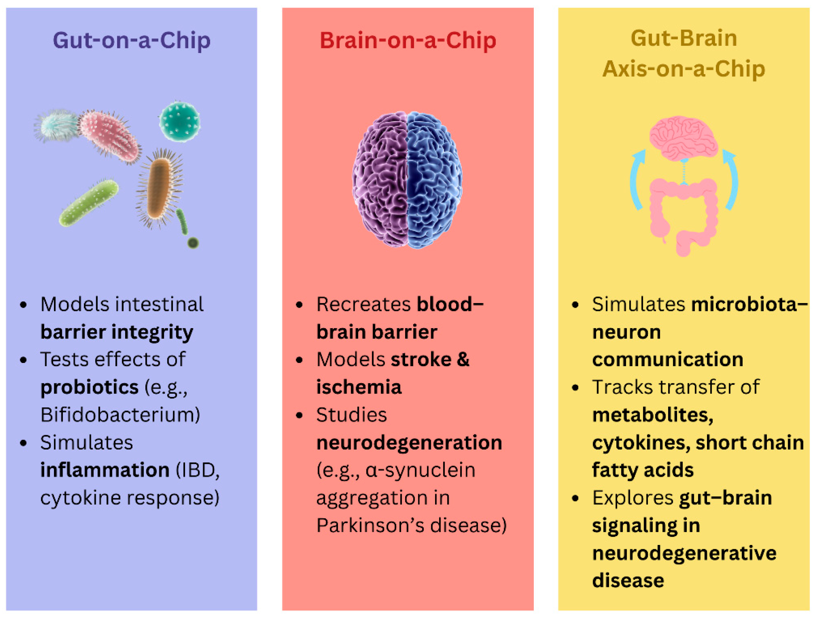 - Raimondi, M.T.; Albani, D.; Giordano, C. An organ-on-a-chip engineered platform to study the microbiota–gut–brain axis in neurodegeneration. Trends Mol. Med. 2019, 25, 737–740. [Google Scholar] [CrossRef] [PubMed]