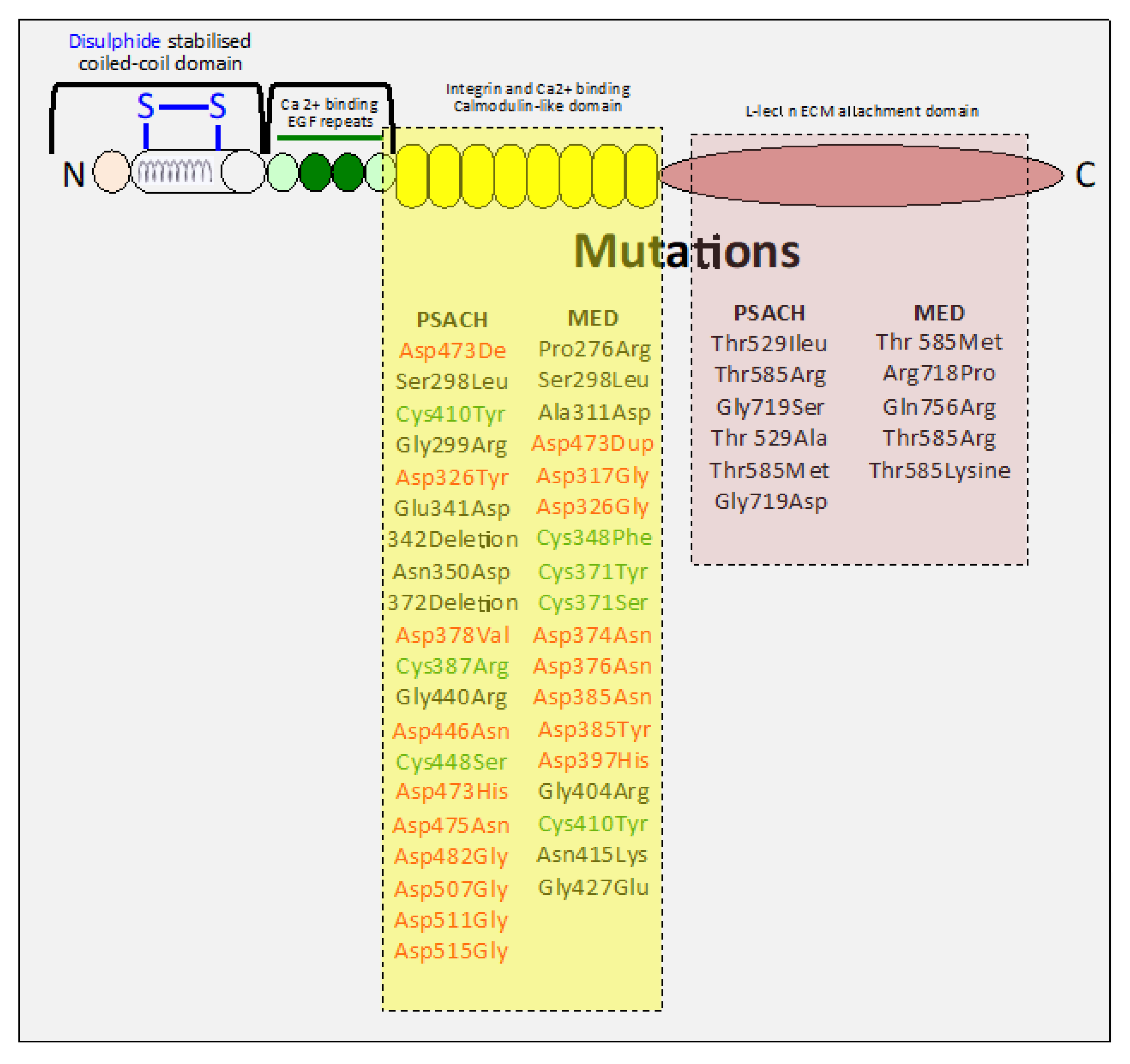 - Briggs, M.; Chapman, K.L. Pseudoachondroplasia and multiple epiphyseal dysplasia: Mutation review, molecular interactions, and genotype to phenotype correlations. Hum. Mutat. 2002, 19, 465–478. [Google Scholar] [CrossRef]