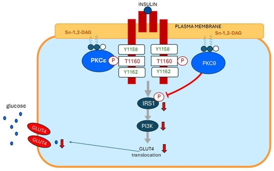 - Szendroedi, J.; Yoshimura, T.; Phielix, E.; Koliaki, C.; Marcucci, M.; Zhang, D.; Jelenik, T.; Muller, J.; Herder, C.; Nowotny, P.; et al. Role of diacylglycerol activation of PKCtheta in lipid-induced muscle insulin resistance in humans. Proc. Natl. Acad. Sci. USA 2014, 111, 9597–9602. [Google Scholar] [CrossRef]