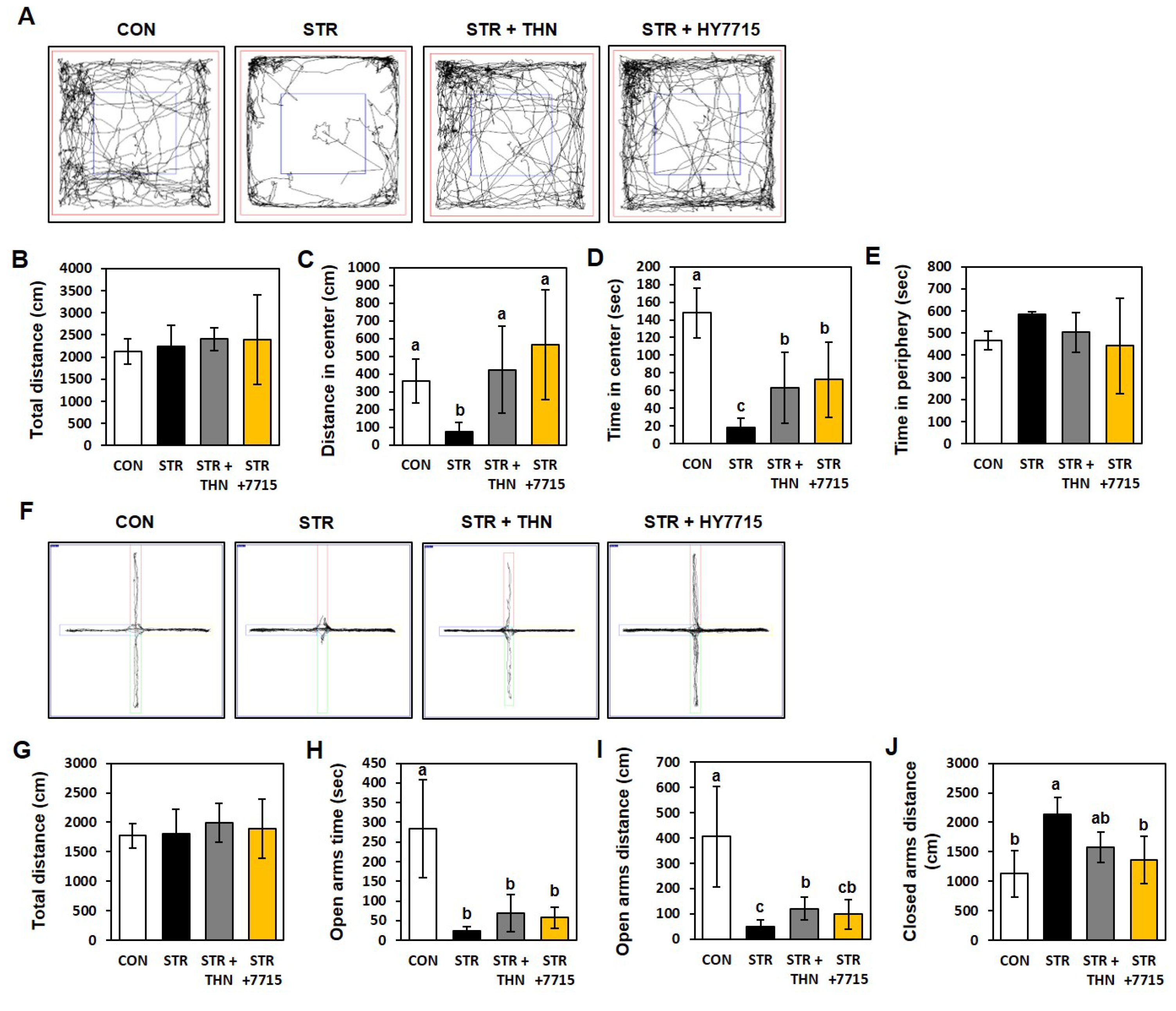 2.2. HY7715 Improves Anxiety-like Behavior in Restraint-Stressed Mice