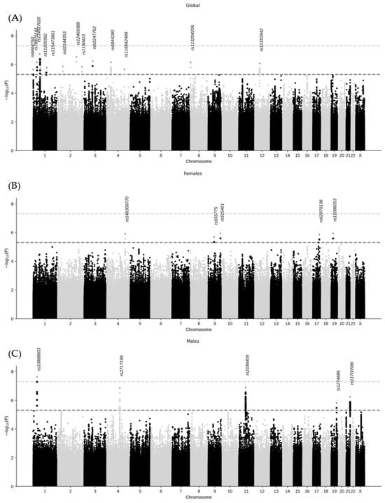 2.2. Genome-Wide Association Analysis and Variant–Sex Interaction