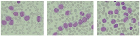 Peripheral blood smear findings of the AML case: myeloblasts in the cytoplasm (Wright-Giemsa stain).