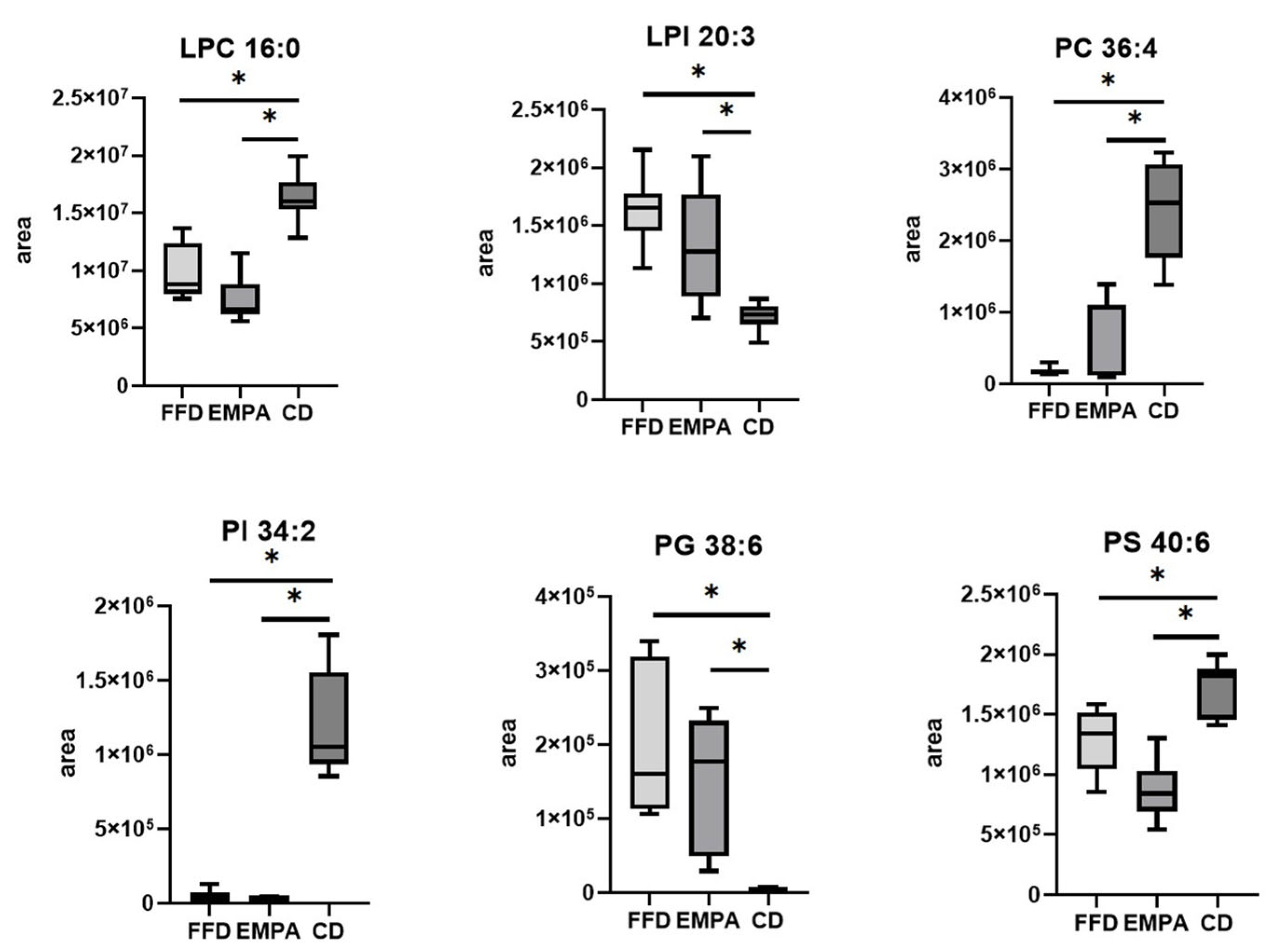 - Miklankova, D.; Markova, I.; Hüttl, M.; Malinska, H. Empagliflozin alters lipid metabolism in the myocardium and liver in a prediabetes model with severe dyslipidemia. Front. Pharmacol. 2024, 15, 1393946. [Google Scholar] [CrossRef]