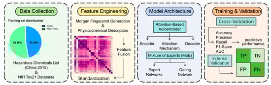 Our study presents the design and implementation of a molecular hazardousness prediction architecture that combines an attention-based autoencoder with a MoE model. By introducing an attention mechanism in the autoencoder, the model is able to automatically focus on the most critical features, thereby enhancing the quality of feature representation. The MoE model leverages the collaborative effect of multiple expert networks, dynamically adjusting the weights of each expert based on the input data, which enhances the model’s flexibility and accuracy [