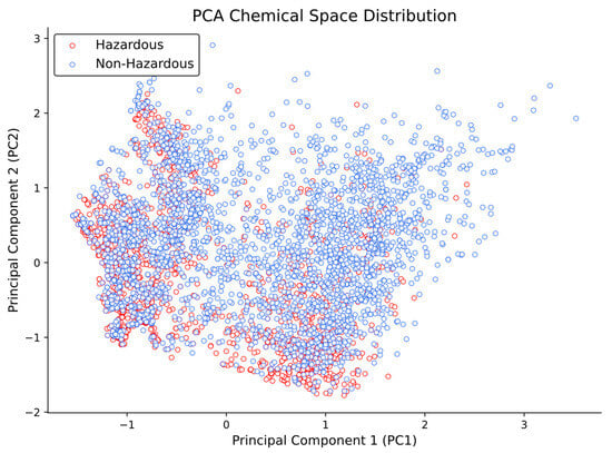 Figure 3) show that both hazardous and non-hazardous chemicals are located in the same, or very similar, chemical space, without a clear separation between the two groups.