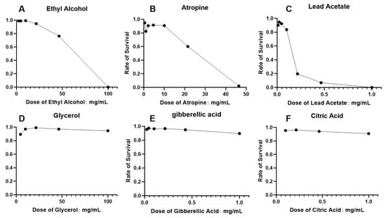 Conversely, citric acid, gibberellin, and glycerol induced no significant mortality, validating their non-toxic classification (