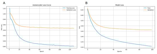 Figure 6A, the training loss of the autoencoder decreases continuously with increasing iterations and stabilizes after 120 epochs. The validation loss, on the other hand, decreases rapidly in the initial stages and then remains relatively stable, indicating that the model is continuously optimizing on the training set while maintaining a stable performance on the validation set. This suggests that the model does not exhibit significant overfitting.