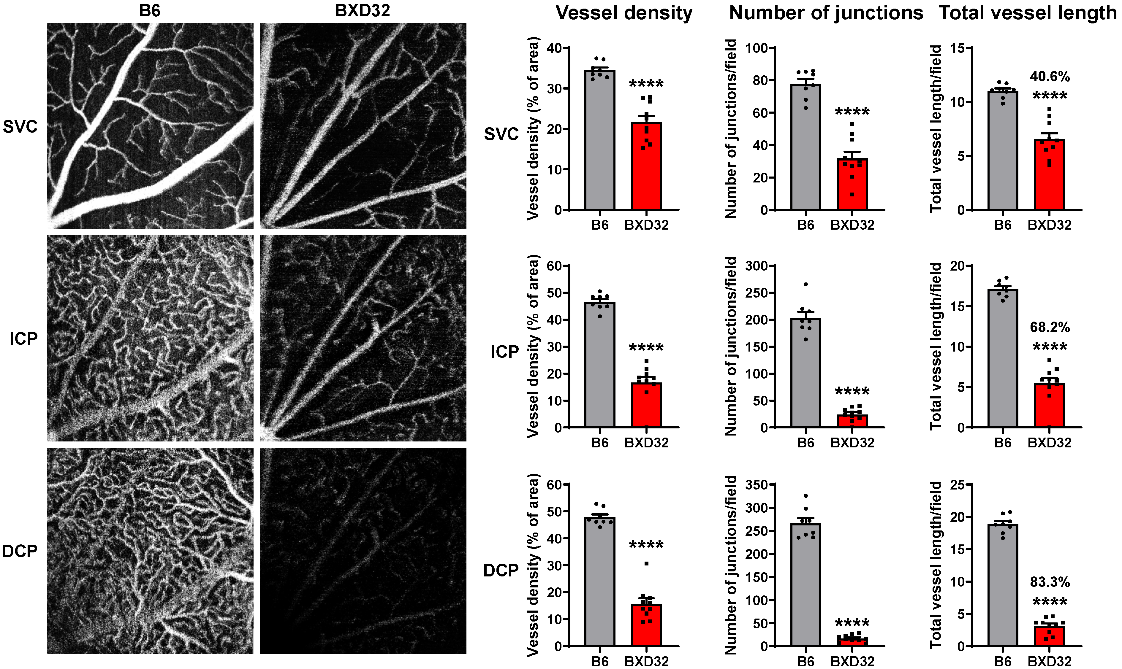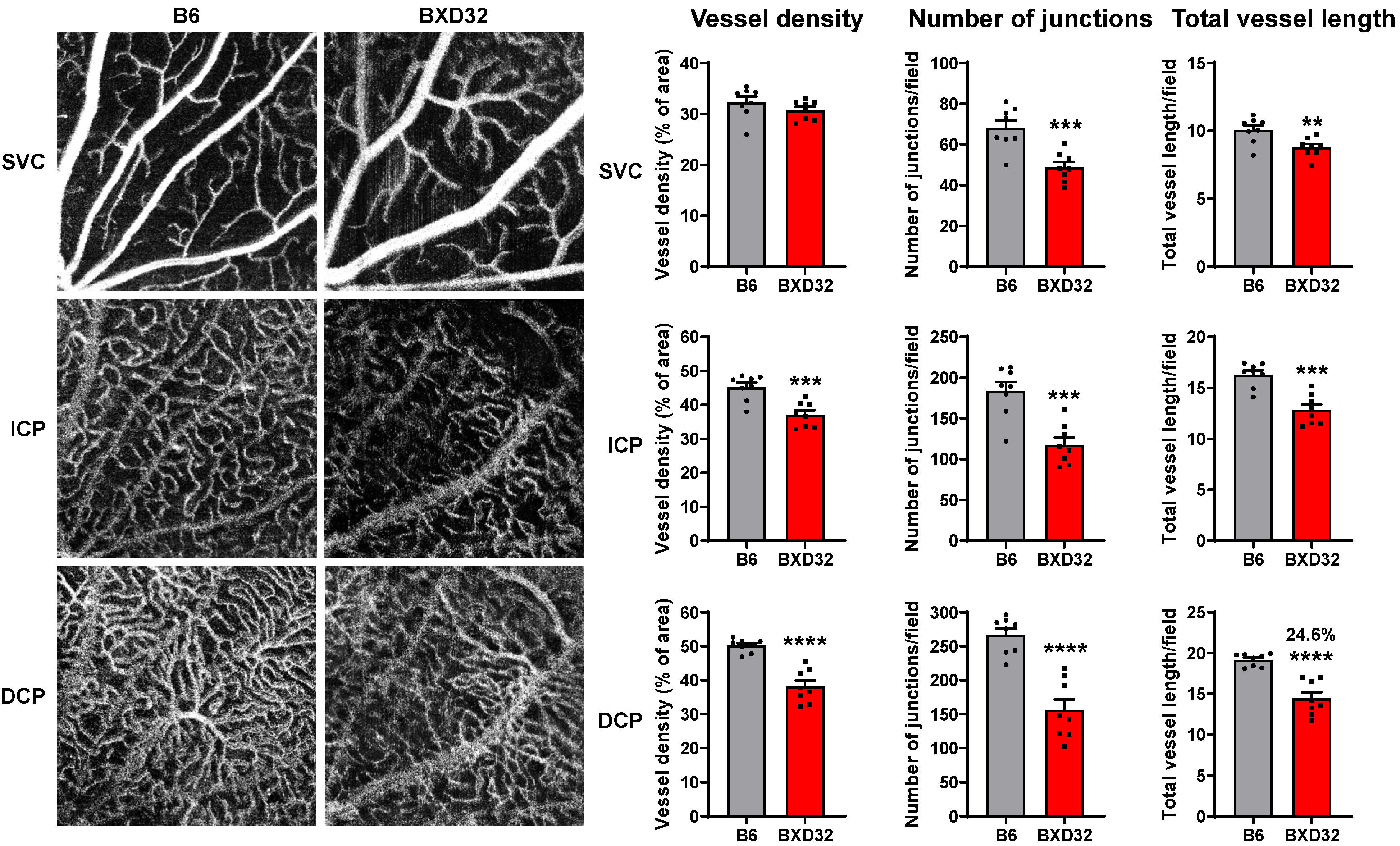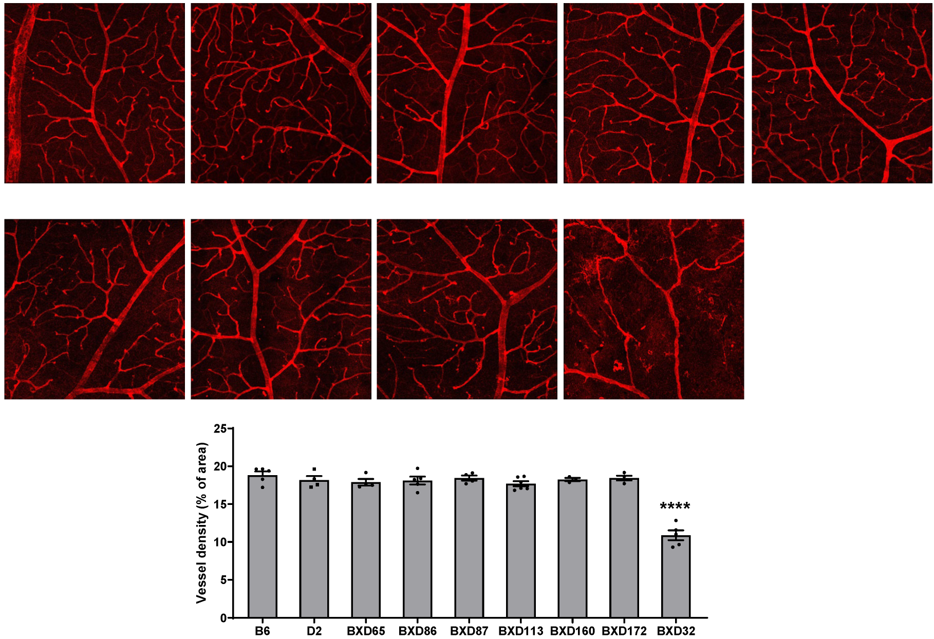 2.1. Identification of BXD32 as an Outlier with Markedly Reduced Retinal Vessel Density