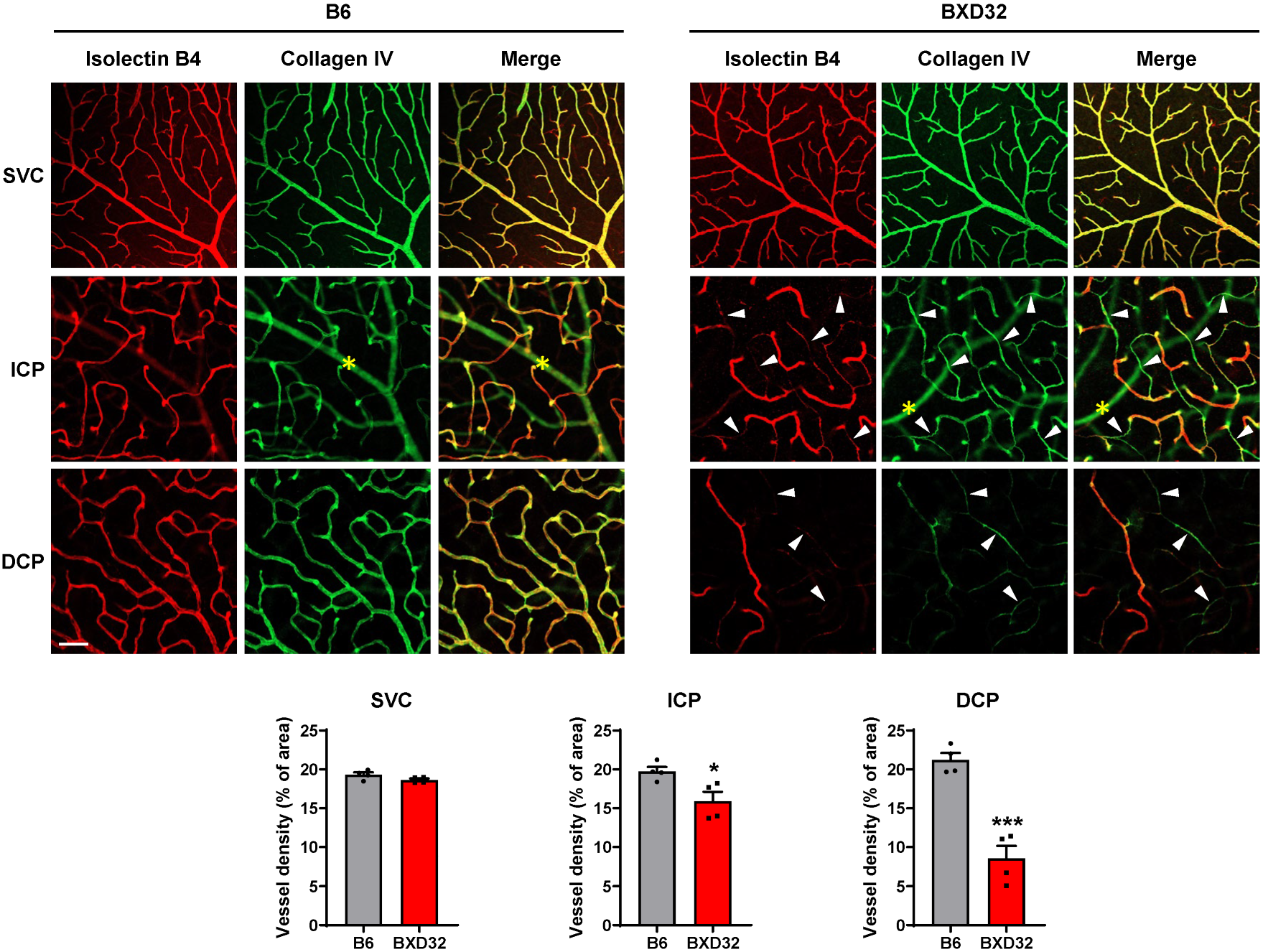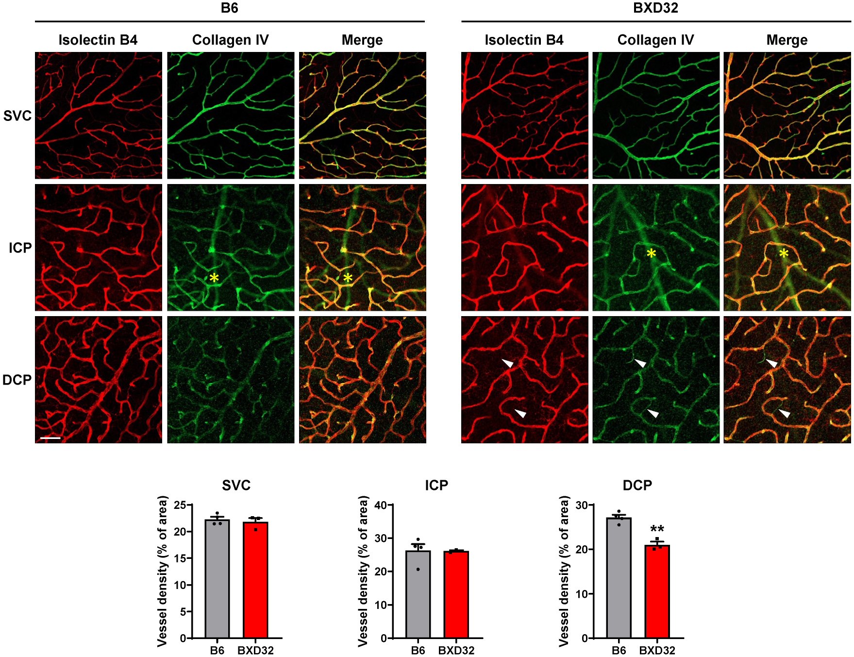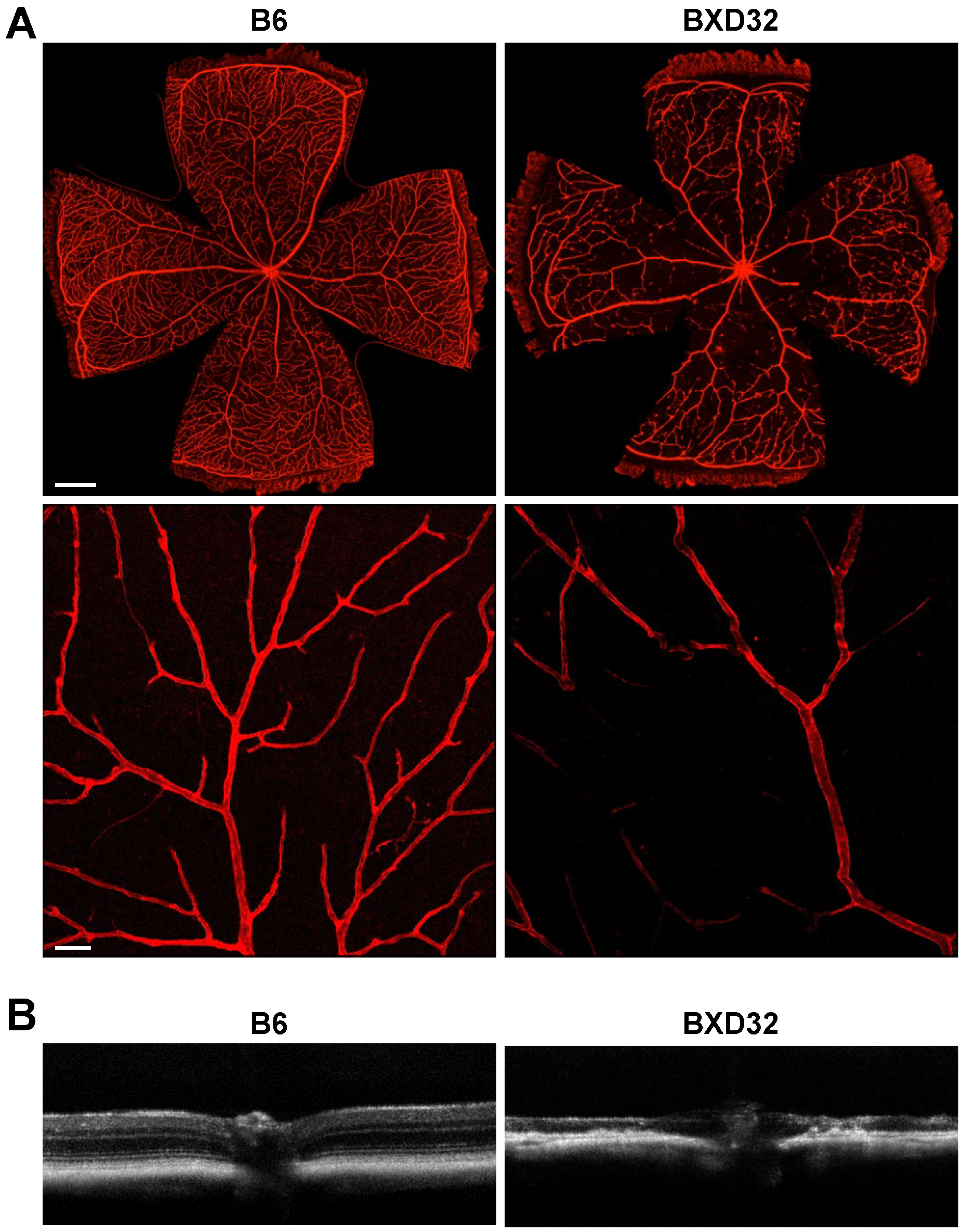 2.1. Identification of BXD32 as an Outlier with Markedly Reduced Retinal Vessel Density