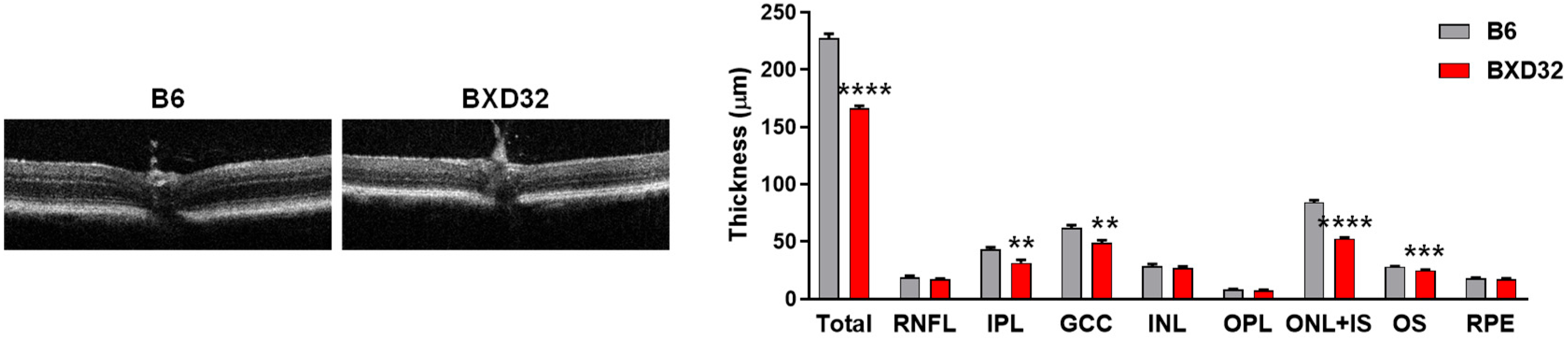 2.2. Early Retinal Degeneration in Young BXD32 Mice