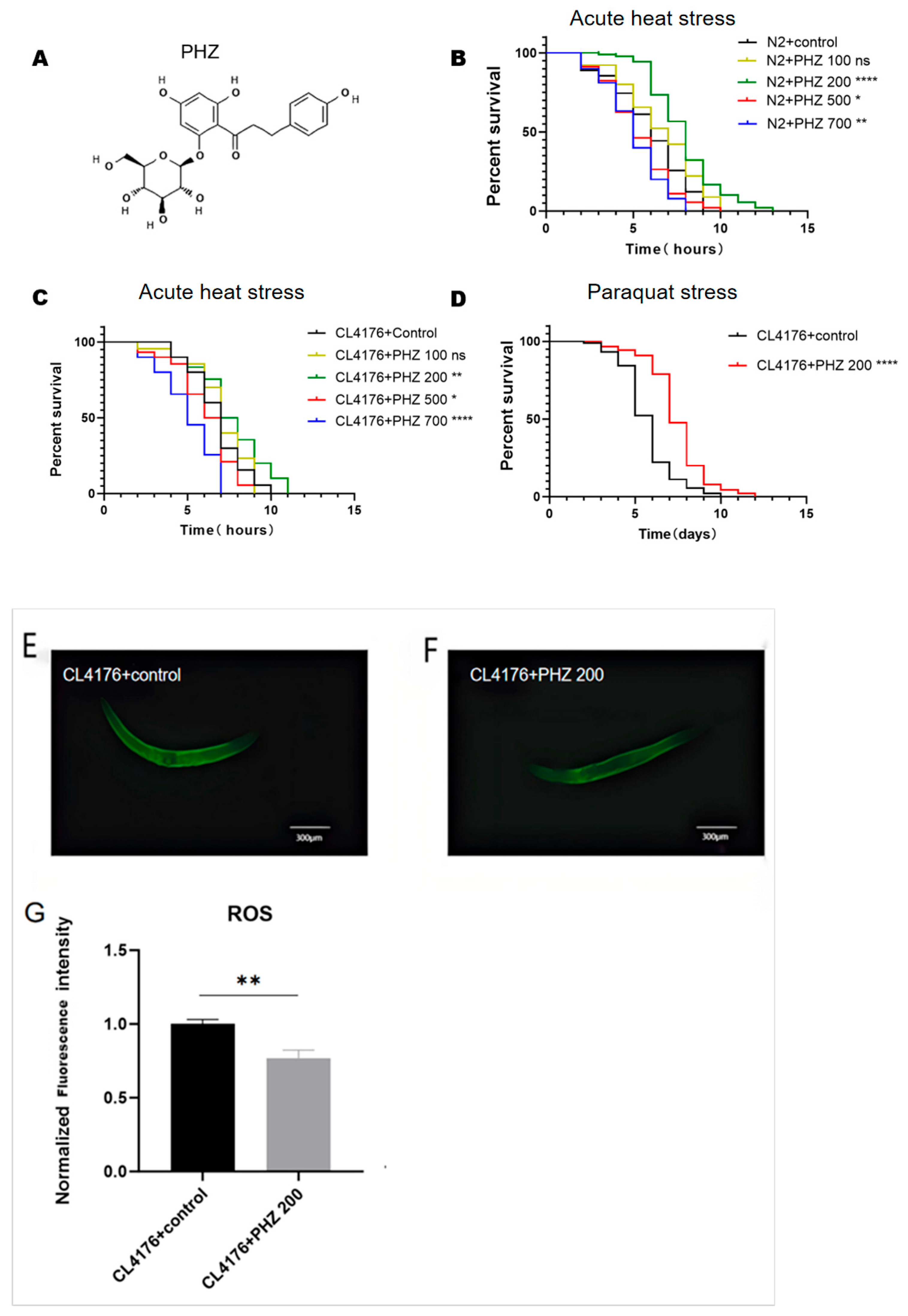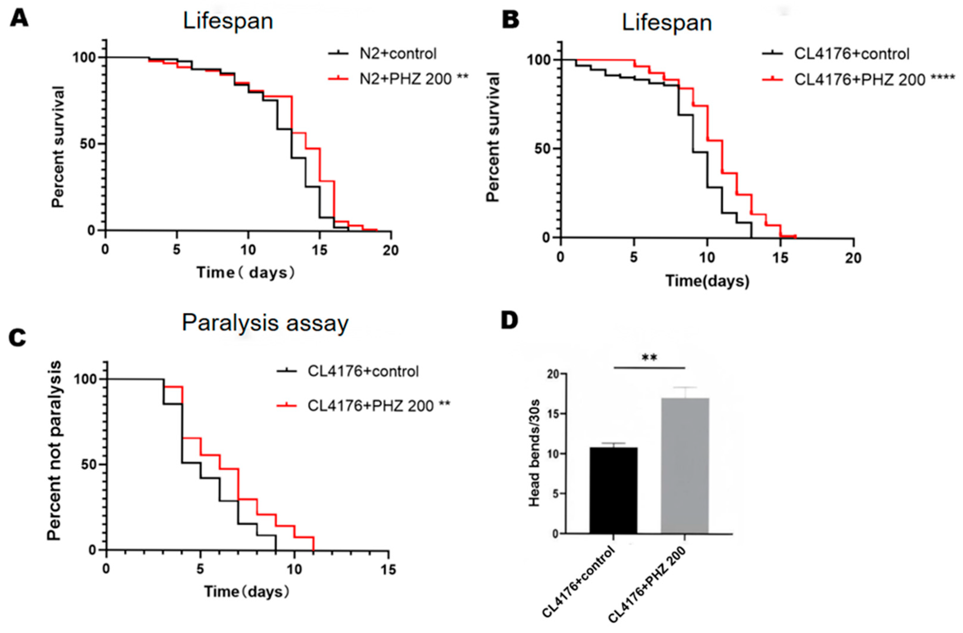 2.2. PHZ Extends the Lifespan of Wild-Type N2 and Transgenic C. elegans CL4176