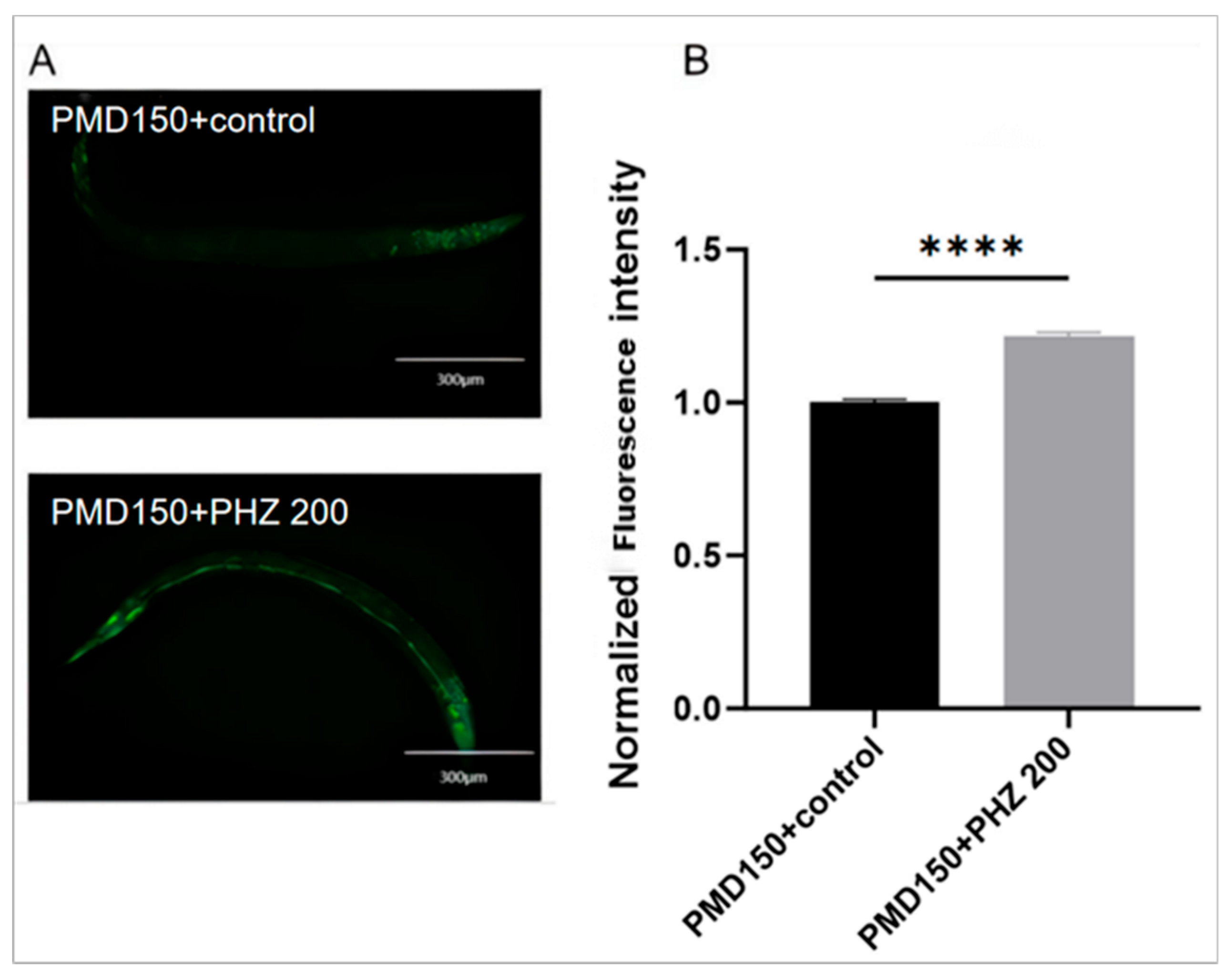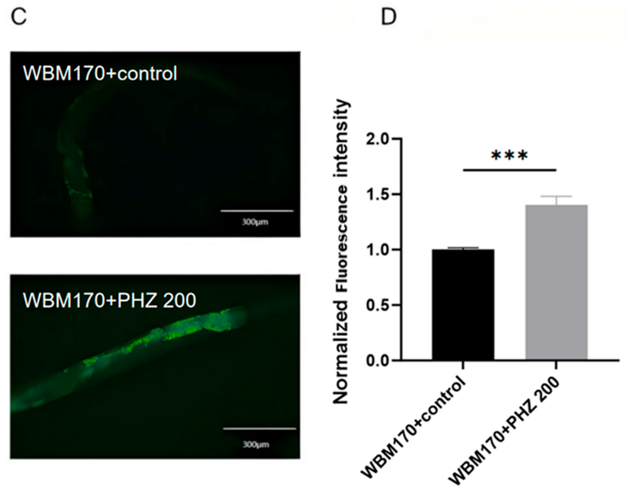 2.1. PHZ Concentration-Dependently Increased C. elegans’ Resistance