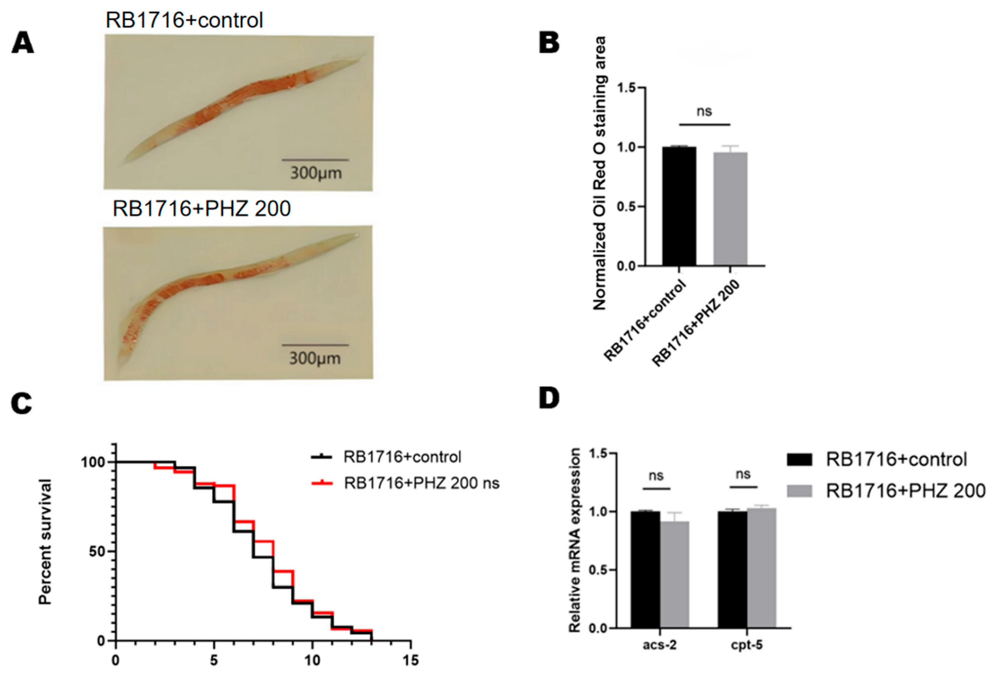 2.7. qRT-PCR Results Indicate That PHZ Protects AD Worms from Aβ Toxicity and Prolongs Lifespan by Enhencing Fatty Acids β-Oxidation