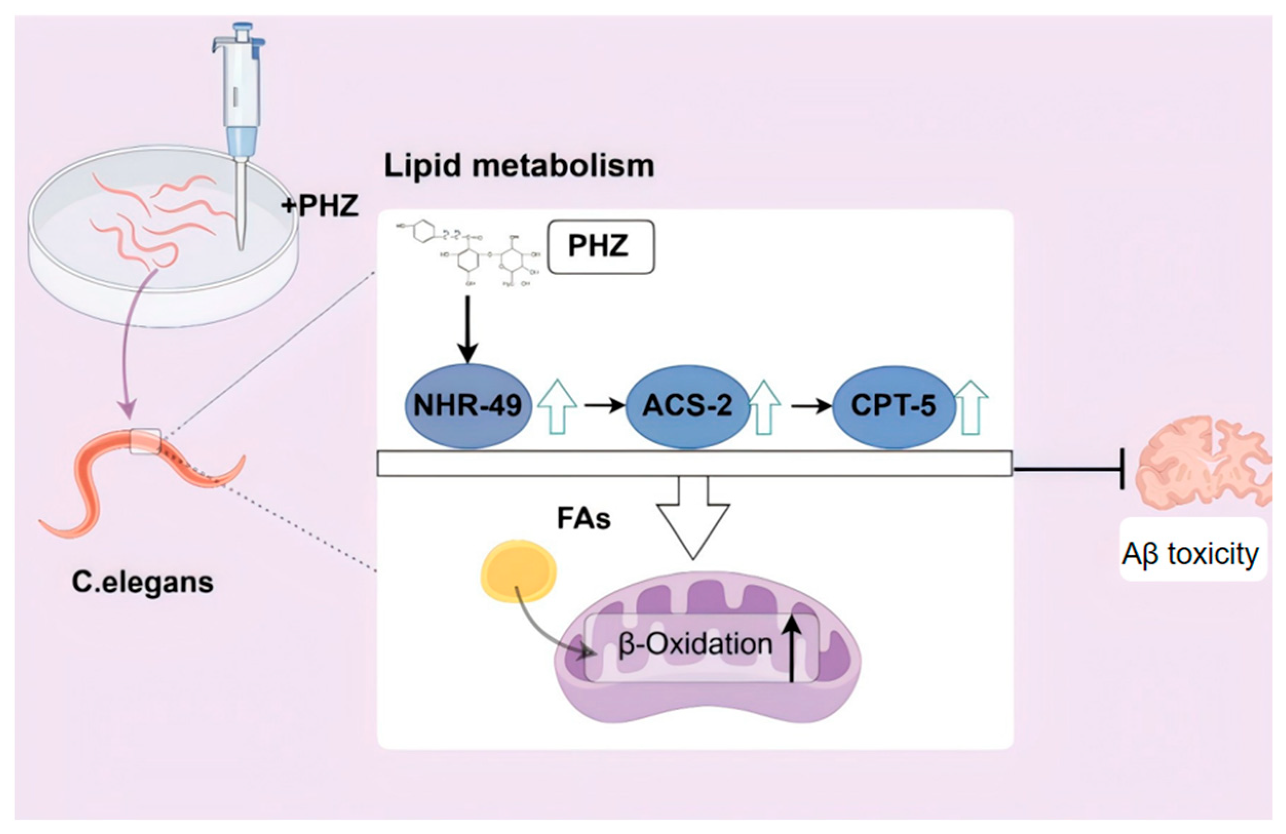 Zhang, X.; Fu, Y.; Li, X.; Zhang, Y.; Li, L.; Yi, T.; Jiang, H.; Lu, Y. Phlorizin Ameliorates Amyloid-β Toxicity and Enhances Fatty Acid β-Oxidation in Caenorhabditis elegans via NHR-49-Dependent Pathway. Int. J. Mol. Sci. 2025, 26, 9303. https://doi.org/10.3390/ijms26199303
